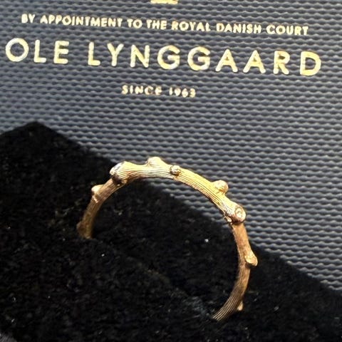 Ole Lynggaard nature ring nr 4 i 18 karat satinert gull, str 56 .