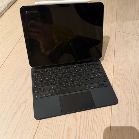 Helt ny kjøpt no i januar nyeste ipad air 11 i lilla, montert skjerm beskytter og cover følger med .. kan være interessant å bytte i MacBook..