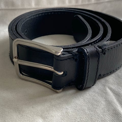 Brunt skinnbelte med metallspenne, unisex design. Beltet har flere hull for justering og passer til ulike midjestørrelser.