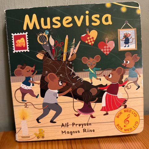 Det kryr av mus i denne samlingen med Prøysen-tekster: muntre mus, lure mus, koselige mus, heldige mus. Og noen av dem møter teskjekjerringa!
