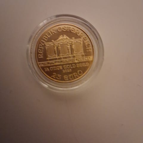 Mynten veier 16,96 gram, å er preget i 22 karat gull (91,7% rent gull) tilsvarer 15,55 gram (1/2 oz) 99.9% rent gull.