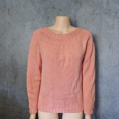 Behagelig causual comfy komfortabel kvalitet elegant stilfull rimelig mote merkeklær bærekraftig gjenbruk secondhand hjemmestrikk bomull genser rosa pudderrosa strikket topp håndlaget oversized sommer dame