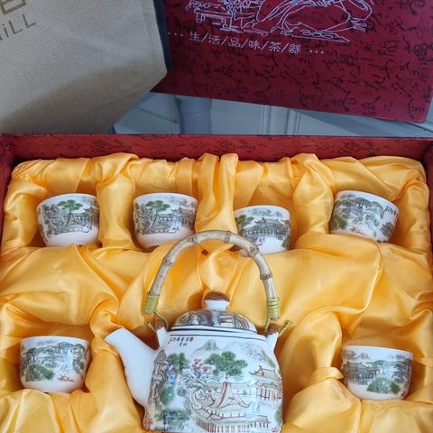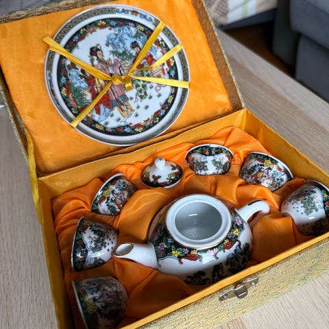 Dekorativt motiv som viser den kinesiske mur og landskap.