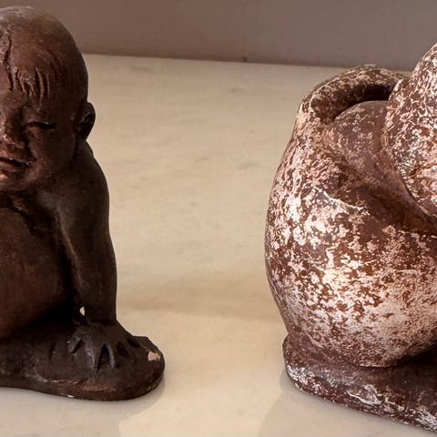 Vintage/retro salt- og pepperbøsser i keramikk – figurer (2 stk) – svart/hvitt