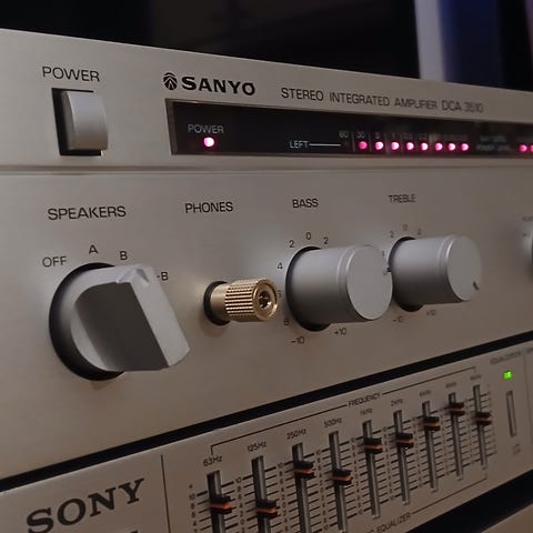 Sanyo Model JA-2100 forsterker fra midten av 80-tallet. Kabinett er i metall og plast.