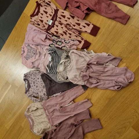 5 bodyer, 5 bukser, 1 genser, 1 heldress.
