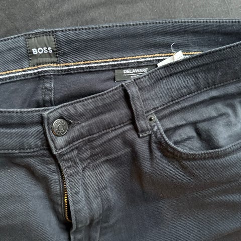Hugo Boss Regular Fit jeans i blått denimmateriale. Størrelse XL med midjemål 36 og 32 i lengde. Lite brukt.