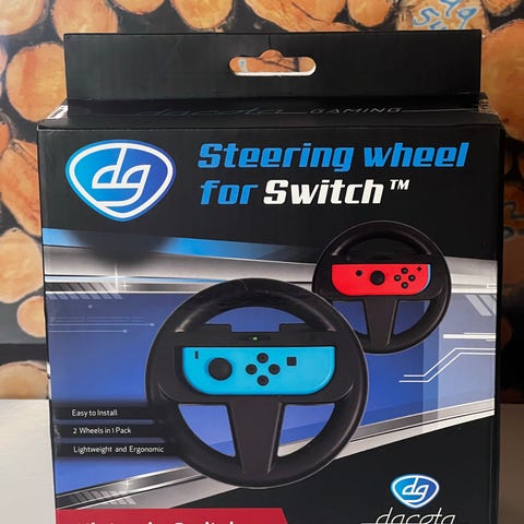 Selger 2 stk styrehjul til Nintendo Switch / Switch OLED, som brukes sammen med Joy-Con-kontrollere. Gir mye bedre spillfรธlelse i racingspill โ spesielt Mario Kart 8 Deluxe.