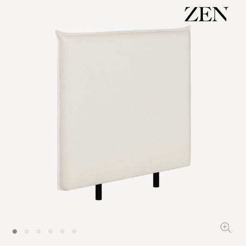 Senge-gavl Zen Berlin 183 cm bred, med grått stoff og sorte ben.