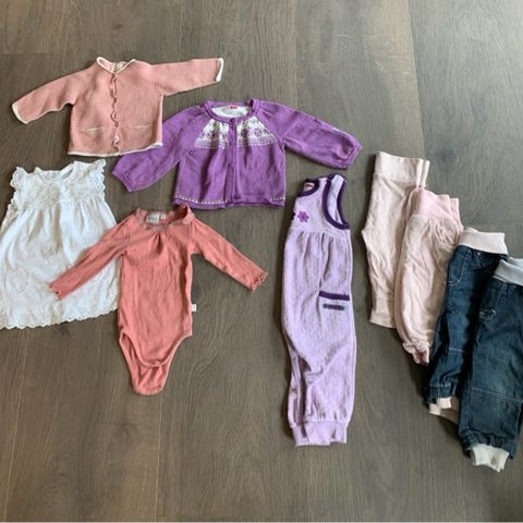 Fint antrekk i rosatoner til jente. Str 68.