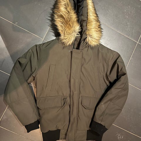 Zara vinterjakke i størrelse S,. Jakken har en grønn farge og er designet for menn. Egnet som yttertøy for kalde vinterdager. Ubrukt, fått i gave.