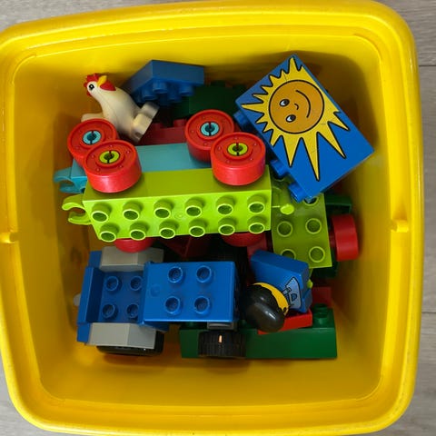 Fint brukt duplo brannbåt med båt, flamme, hund, brannslange, styrhus og brannmann. Komplett som i oppskrift, men den originale brannmannen har desertert og blitt erstattet med annen staut figur. Litt slitt farge på snuten til hunden, se bilde.