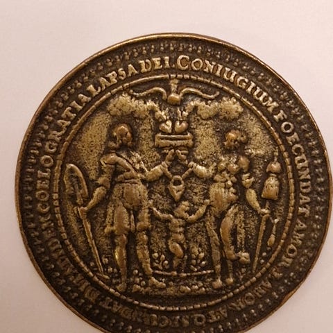 Bernhard Folkestad maleri med motiv av folkemengde og bygninger. Inkluderer original ramme og sertifikat fra Det Norske Kunstgalleriet.