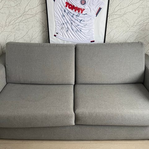 Sofa fra Bohus ca 2 meter med puff selges da vi har bestilt ny sofa. Kjøpt på finn for 1 år siden. Må hentes og bæres selv.