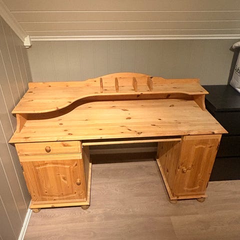 Glassoverflate til skrivebord (eller andre typer bord) gis bort pga. flytting. Det er noen bruksmerker etter tusj og blyant. Overflaten har vært brukt som skrivebord. Må hentes før 6.februar.
