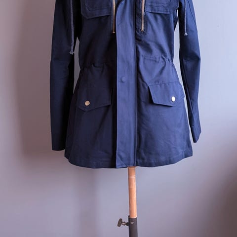 Størrelse 2 regner jeg med tilsvarer en Small. 88cm fra midt bak nakke/rygg og ned. Pent brukt, ingen bruksmerker.