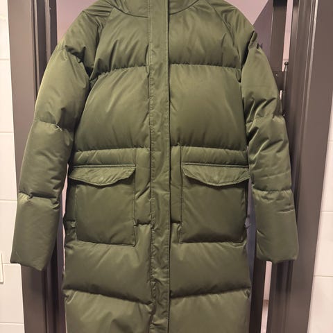 Rains i størrelse S for kvinner men synes den er mer en M Jakken er brun taupe Den har en lang modell som dekker godt, og er vanntette og vindtett og pustende ideell i norsk klima med regn snø og sludd om hverandre - ikke dun men kjempe varm