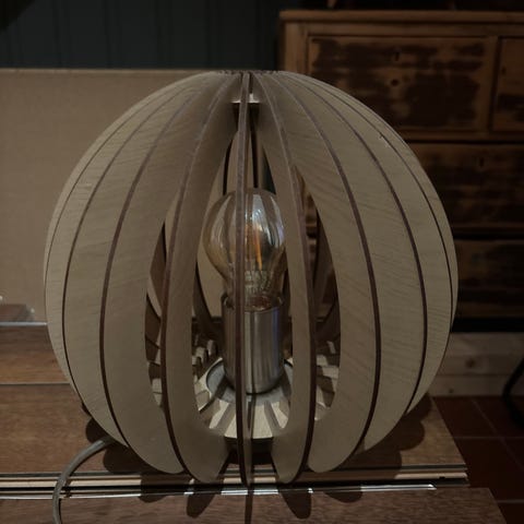 Veldig pen pendellampe som gir et vakkert lys gjennom trespilene av lønn. Basert på Eglo Cossano design, 50 cm i diameter.