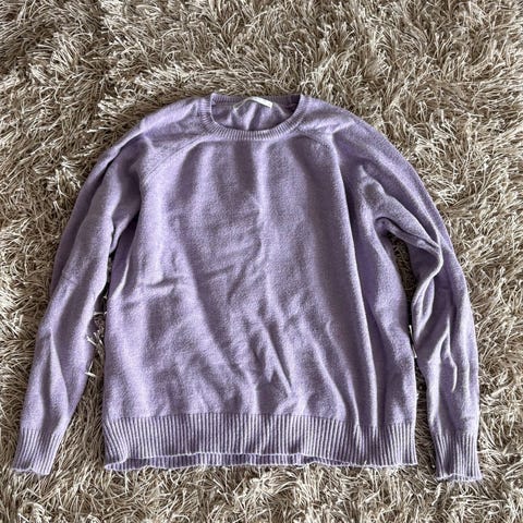Be More genser i blå farge, størrelse M. Laget av 95% rayon og 5% spandex, med 100% polyester for stoff 2. Genseren har langermet design og passer for kvinner. Pen på.