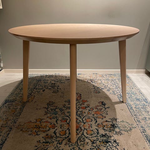 Det er noe normal bruksslitasje og enkelte merker i bordplaten (se bilder), men bordet er fullt funksjonelt.