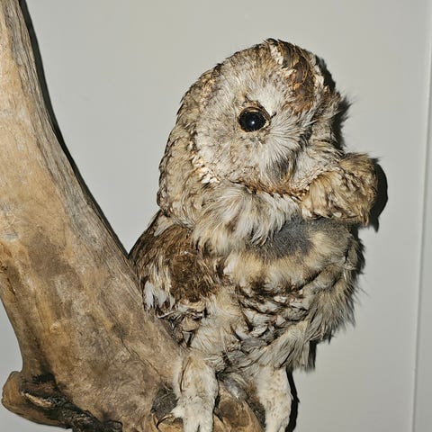 Pen, eldre utstoppet ugle som er arvet selges kr 3000. Usikker på type ugle. Den måler ca 38 cm fra øverst på hodefjær til nederst på vingefjær slik den sitter. Må hentes på Bryn i Oslo.