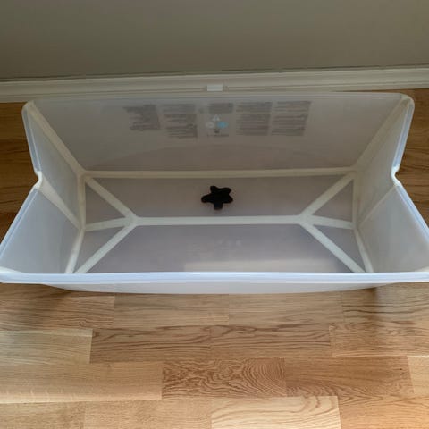 Fjellpulken sovepose i grå og rød farge. Soveposen er egnet for pulk, barnevogn og camping.