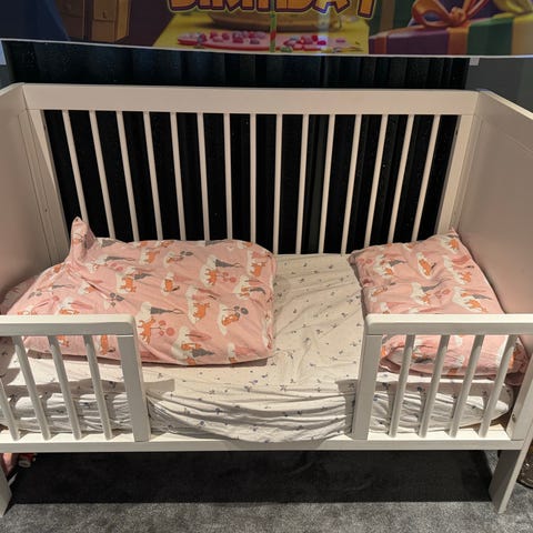 Madrassen er kjøpt ny, men brukt kun et par ganger siden ungen ikke likte sprinkelsenga.