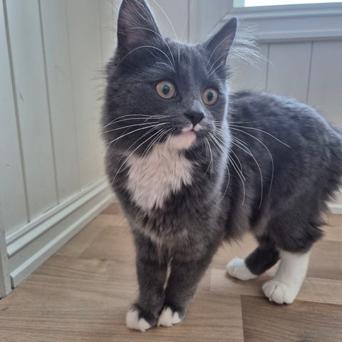 Får med alt av utstyr til henne. Hun elsker å kose på sofaen og en ivrig musejeger, men slår seg også til ro som innekatt 😻