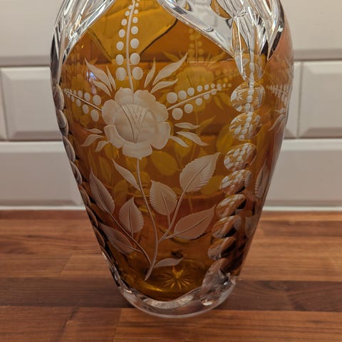 Selger en stor tung(!) krystallvase av merket Nachtmann. Minner veldig om Orrefors sin kolleksjon Rasberry/Hallon