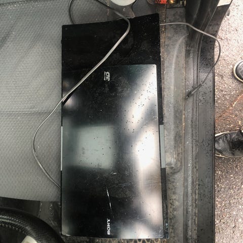 Samsung DVD-spiller i svart farge. Utstyrt med tilkoblinger som HDMI ut, optisk digital lyd ut, og analoge AV-utganger for lyd og video. Designet for avspilling av DVD-media.