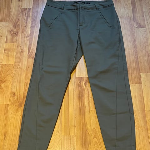 Ny, ubrukt med lappen på. Vero Moda Maya dressbukse størrelse medium, lengde 34, farge: mørk grå (dark melange), innerbenslengde ca. 76 cm. Skikkelig behagelige, mykt stoff med litt stretch. En favoritt, men kjøpte feil størrelse. Koster nå 449 i butikk.