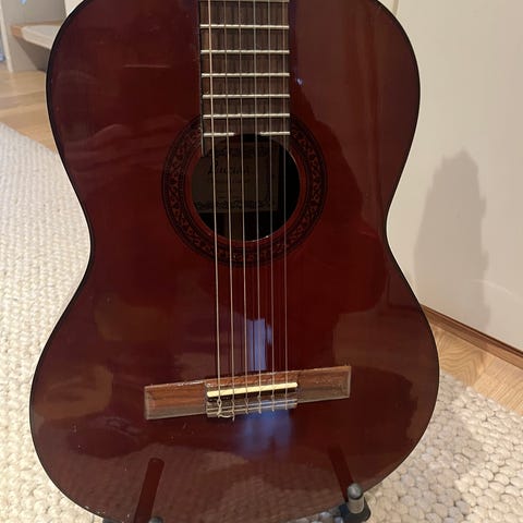 Akustisk gitar av klassisk, egnet for nybegynnere og viderekomne. Den er liten i størrelse