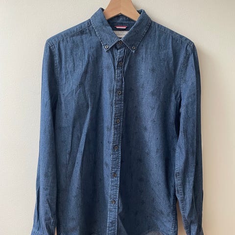 Moods of Norway Slim skjorte i størrelse M. Skjorten er blå og laget av 100 % bomull.