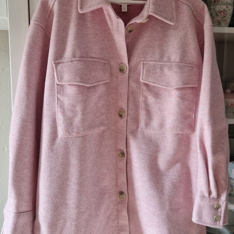 Lekker rosa jakke med skjult lukking foran. ( Hempe)