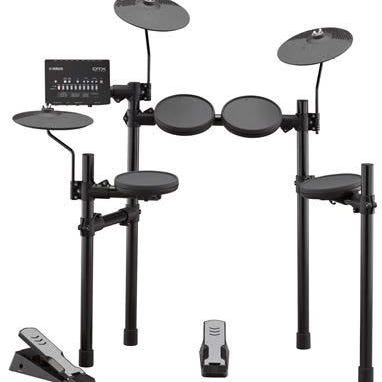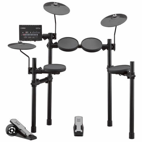 Selger et Yamaha DTX500K elektronisk trommesett. Dette er et solid og driftssikkert sett som passer perfekt til øving hjemme, spesielt siden man kan spille med hodetelefoner.