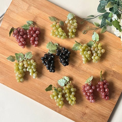 Dette er dekorative drueklaser, en samleobjekt-stil pyntegjenstand, laget av rosa kvarts og ametyststeiner.