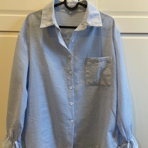 Pent brukt stripete skjorte med knyting foran.