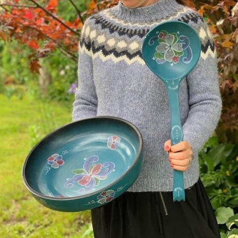 Rosemalt skål med lokk