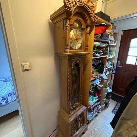 Stående gulvur i tre med glassdør ,bestefarsklokke