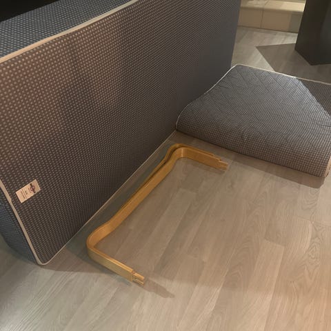 Seng stått på barnerom. Madrassmål 90x200, sengen måler 120 x200 pga hylle/skuffe. Litt bruksmerker. Mangler noe deksel over skruer. Sengen er nå demontert. Mangler monteringsanvisninger. Gis bort.
