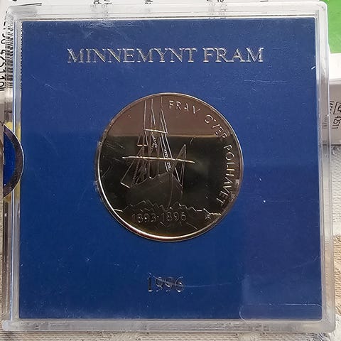 Norges Bank Minnemynt utgitt i 1991 for å markere 175-årsjubileet. Mynter med motiv og tekst som viser grunnleggelsen av Norges Bank i 1816 og jubileumsdatoen 14. juni 1991. Utgitt av Den Kongelige Mynt.