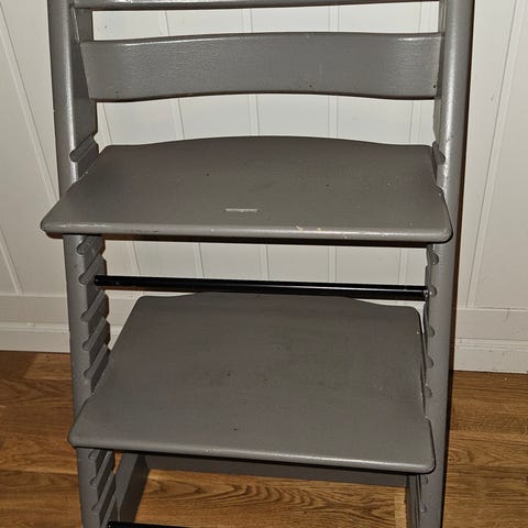 Selger tripp trapp stol i svart! Stolen er av nyere modell og passer både babysett og baby sete, stolen har ikke svær synlige merker bare litt bordkantmerker ( se bilde 5)