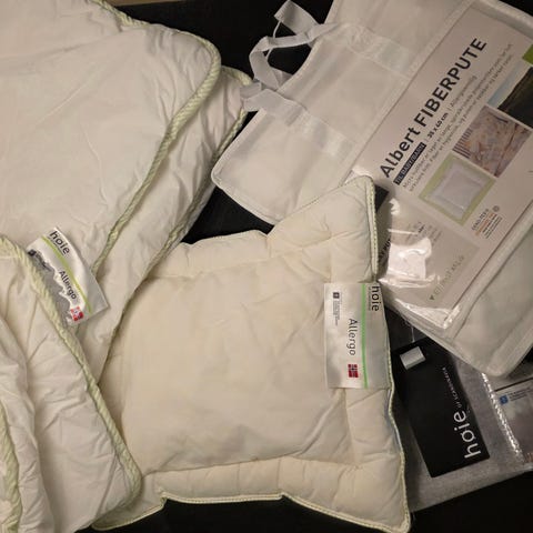 Selger pent brukt dyne og pute sett fra Høie allergo. Fiberdyne. Ingen flekker, og vasket i parfymefritt vaskemiddel.