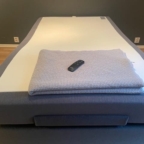 Svært pent brukt Linea Leander seng med madrass, stativ til sengehimmel, sengehimmel og beskyttelseskant.