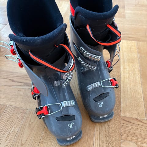 Rossignol Comp J4 skistøvler i størrelse 245 (285 mm). Støvlene er svart med rosa detaljer og har fire justerbare spenner for god passform. Egnet for alpinski og gir støtte og kontroll under skikjøring.