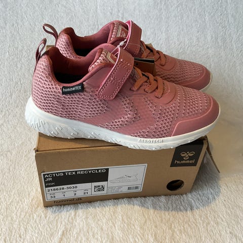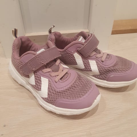 Hummel barnesko unisex i størrelse 28. Skoene er lilla og laget av tekstilmateriale. Designet for barn med enkel lukking med borrelås og snøring.