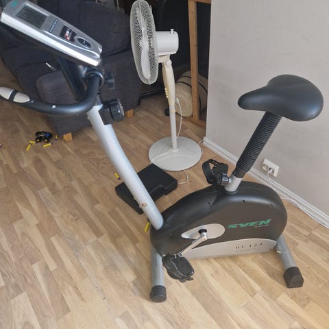 Benefit B420 treningssykkel med digitalt display. Sykkelen har justerbart sete og håndtak, og egner seg for innendørs trening.