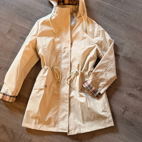 Vindtett og vannavvisende jakke/ anorakk. Helt ny, lappen henger på. God kvalitet. Flere lommer. Fin både høst, vår, men også om vinteren med tjukkere genser under.