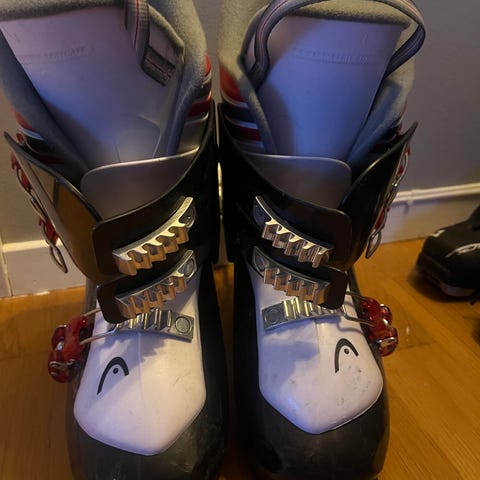 Head alpinstøvel i svart med røde og blå detaljer. Størrelse 25,0/25,5. Støvelen har justerbare spenner og solid såle. Små i str, så ca 37.