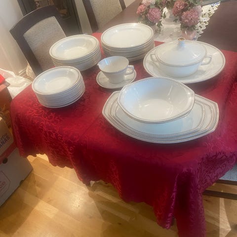 To stk Rörstrand Europa tallerken med en diameter på 24 cm. Tallerkenen har en hvit base med blå dekor langs kanten. Selges samlet. Minner litt om spindelvev, veldig fin og spesiell dekor. Kan hentes eller sendes. Se også mine andre annonser på Finn.